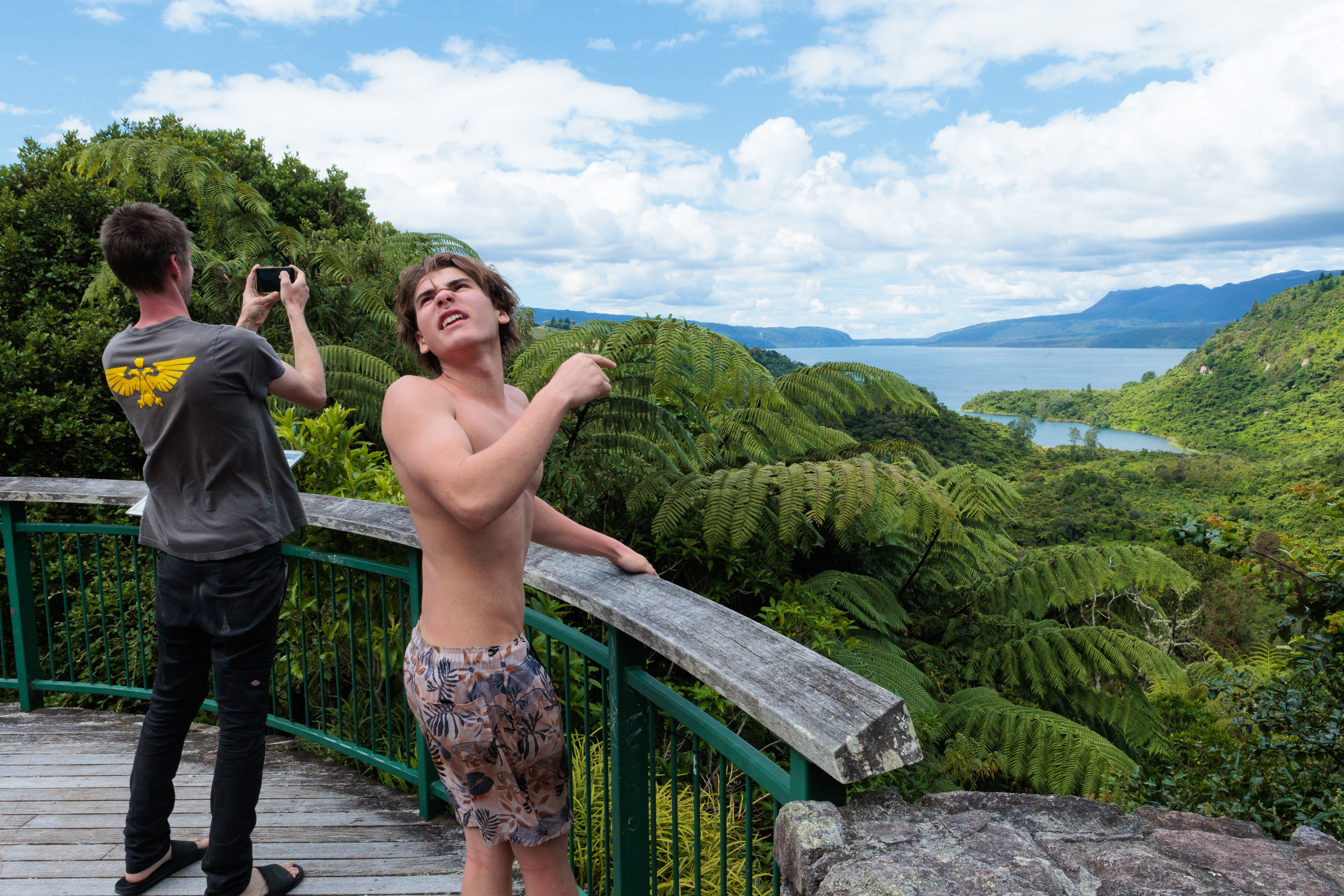 Above: Lake Tarawera, I think some volcano blew up here a long time ago and it looks cool now and Shane feeling the mean Kiwi sun, which smells too loud